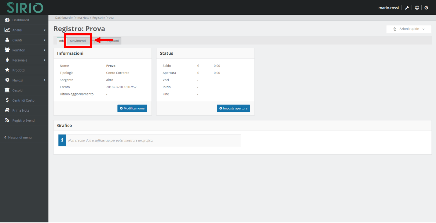 3. Cliccare sull'etichetta Movimenti