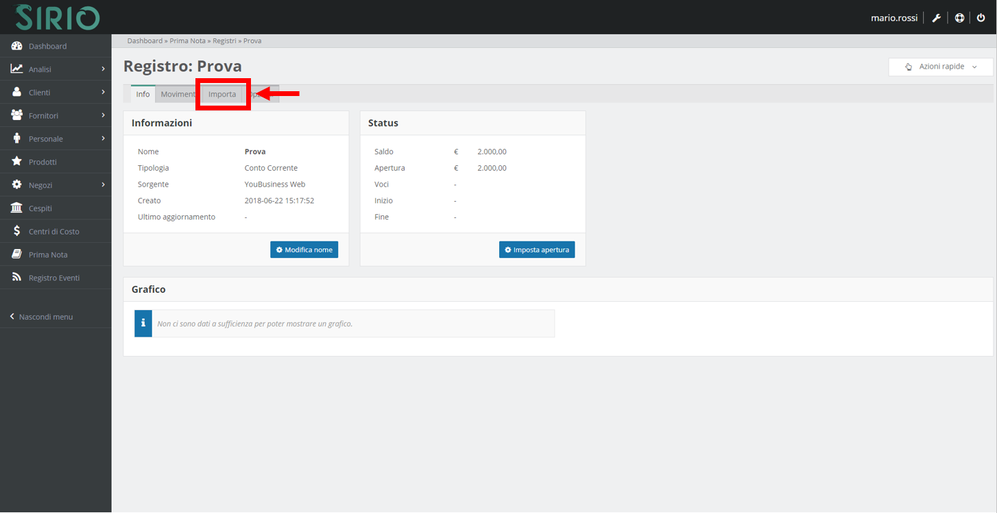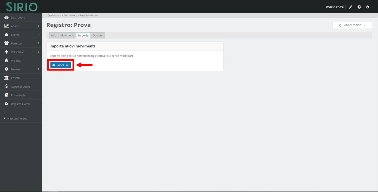 Per importare un file e creare così una prima nota su Sirio, occorre eseguire 2 passaggi: